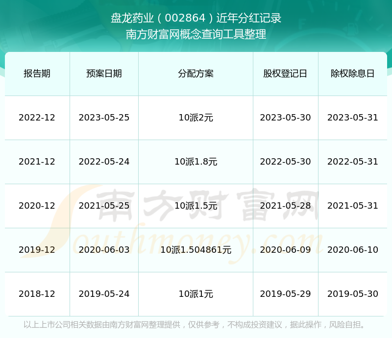 盤龍藥業(yè)最新一次公布的分紅方案:10派2元。