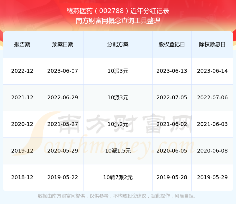 二、鷺燕醫(yī)藥002788行業(yè)分紅排名