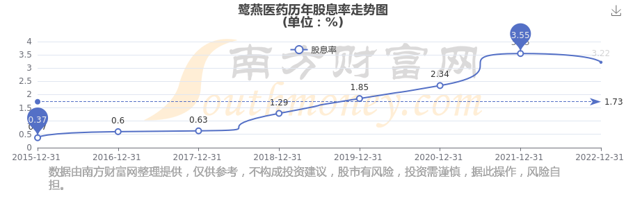 近年鷺燕醫(yī)藥年度股息率走勢(shì)如下圖: