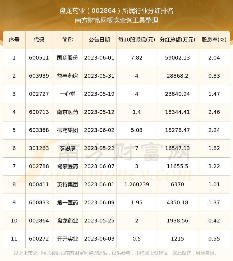 二、盤龍藥業(yè)002864行業(yè)分紅排名