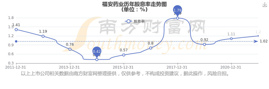 近年福安藥業(yè)年度股息率走勢如下圖: