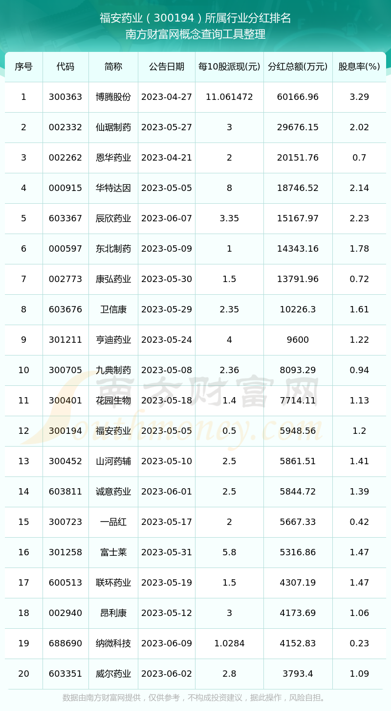 二、福安藥業(yè)300194行業(yè)分紅排名
