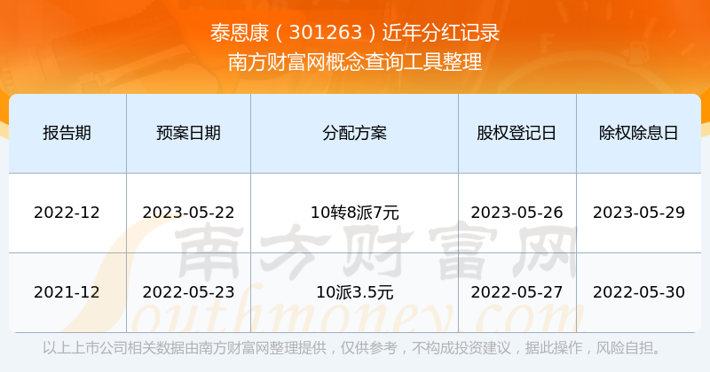 泰恩康最新一次公布的分紅方案:10轉8派7元。
