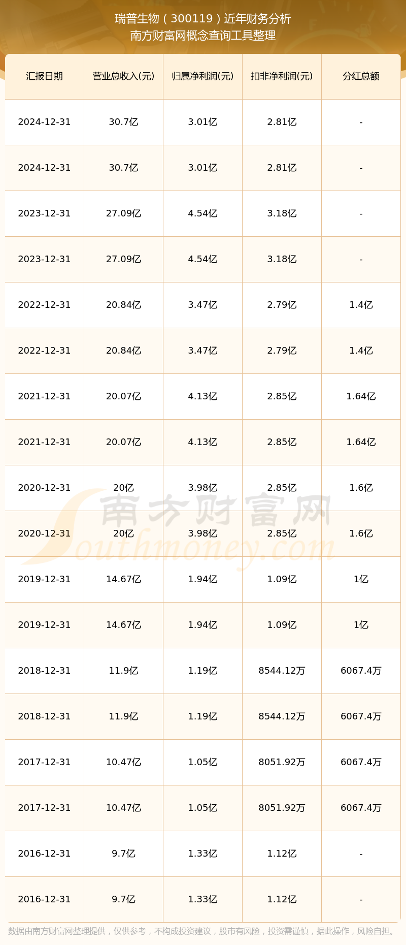 2024年瑞普生物總營(yíng)收30.7億,同比增長(zhǎng)13.32%;凈利潤(rùn)3.01億,同比增長(zhǎng)-33.7%;銷售毛利率41.38%。