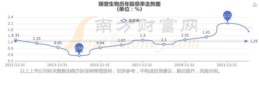瑞普生物歷年股息率走勢(shì)如下圖: