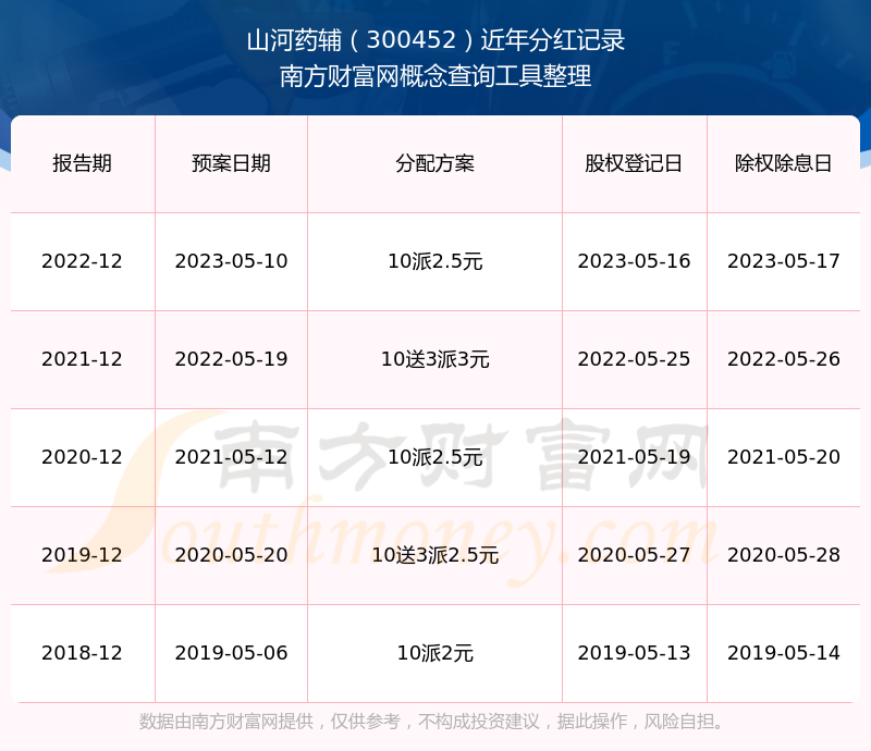 山河藥輔最新一次公布的分紅方案:10派2.5元。
