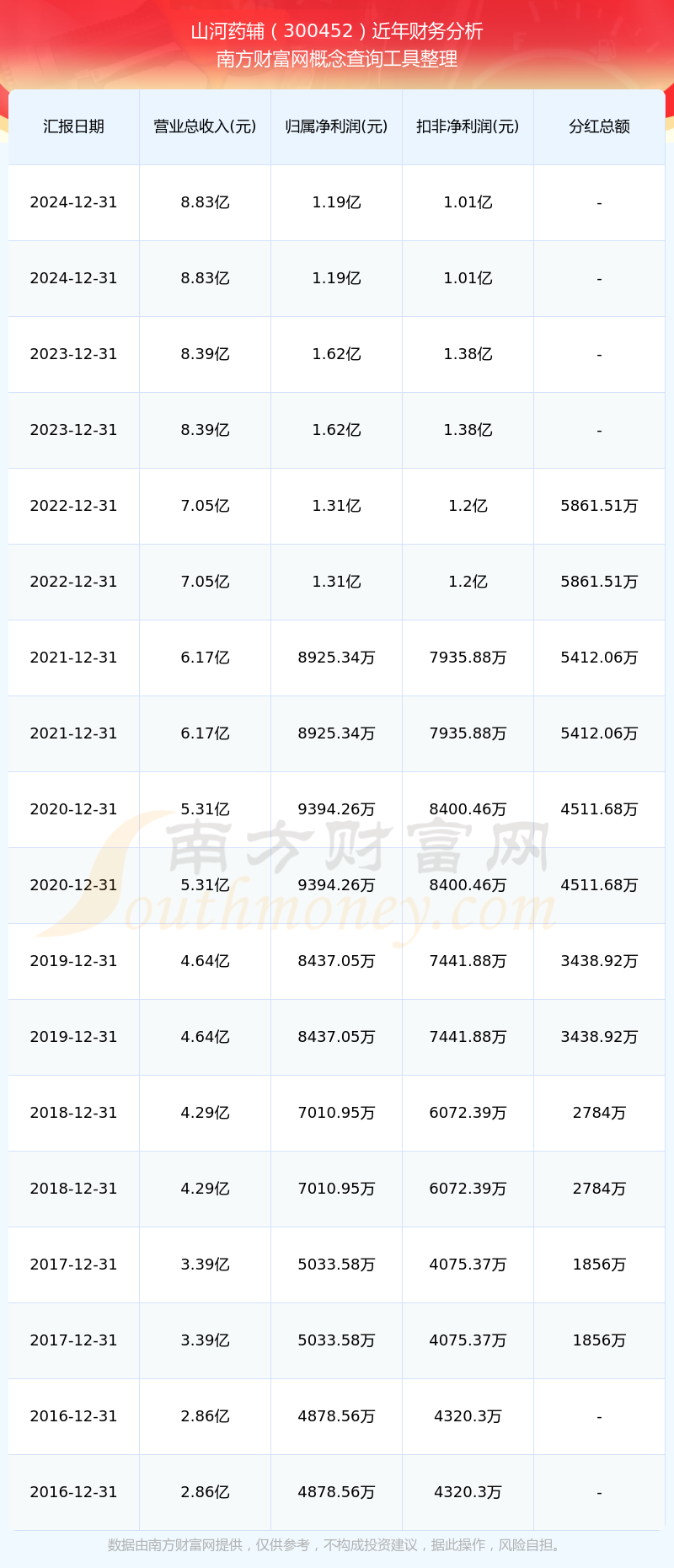 山河藥輔公司2024年實(shí)現(xiàn)營業(yè)收入8.83億元,同比增長5.16%;凈利潤1.19億元,同比增長-26.07%;毛利率31.04%。