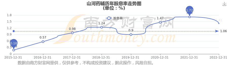 山河藥輔歷年股息率走勢(shì)如下圖: