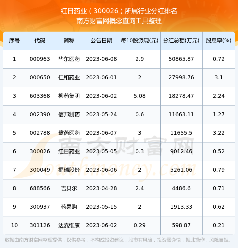 二、紅日藥業(yè)300026行業(yè)分紅排名