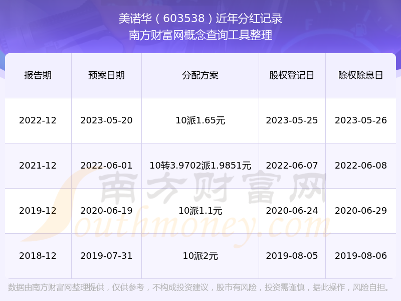 美諾華最新一次公布的分紅方案:10派1.65元。