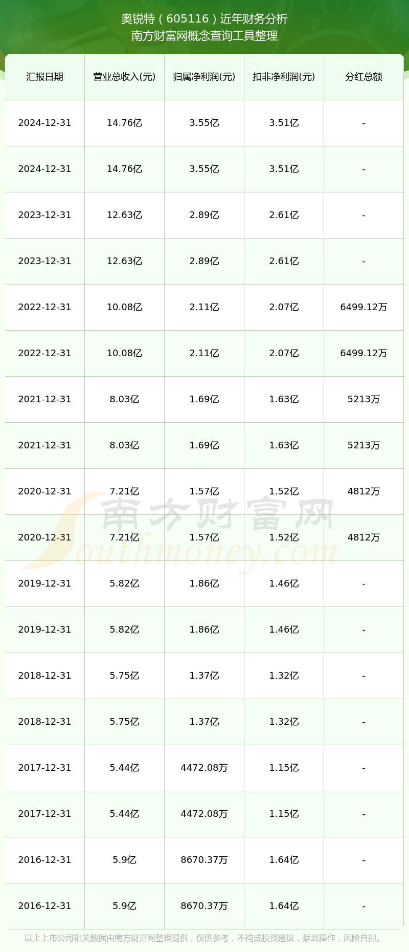 2024年奧銳特總營收14.76億,同比增長16.89%;凈利潤3.55億,同比增長22.59%;銷售毛利率58.56%。