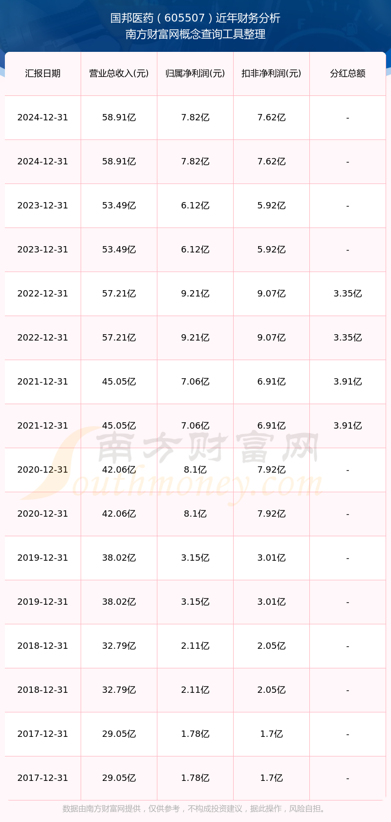 國(guó)邦醫(yī)藥歷年分紅派息情況如下表所示: