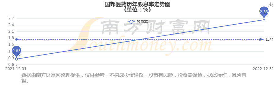 國(guó)邦醫(yī)藥歷年股息率走勢(shì)如下圖: