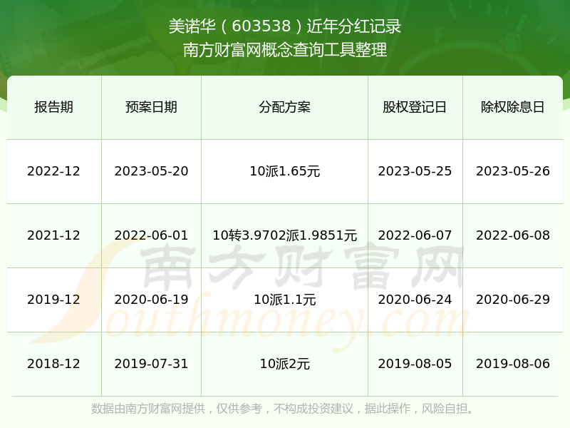 美諾華最新一次公布的分紅方案:10派1.65元。