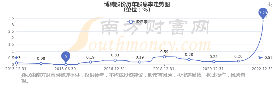 博騰股份歷年股息率走勢如下圖: