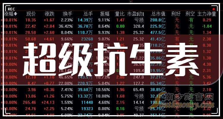 據南方財富網概念查詢工具數據顯示,超級抗生素題材有: