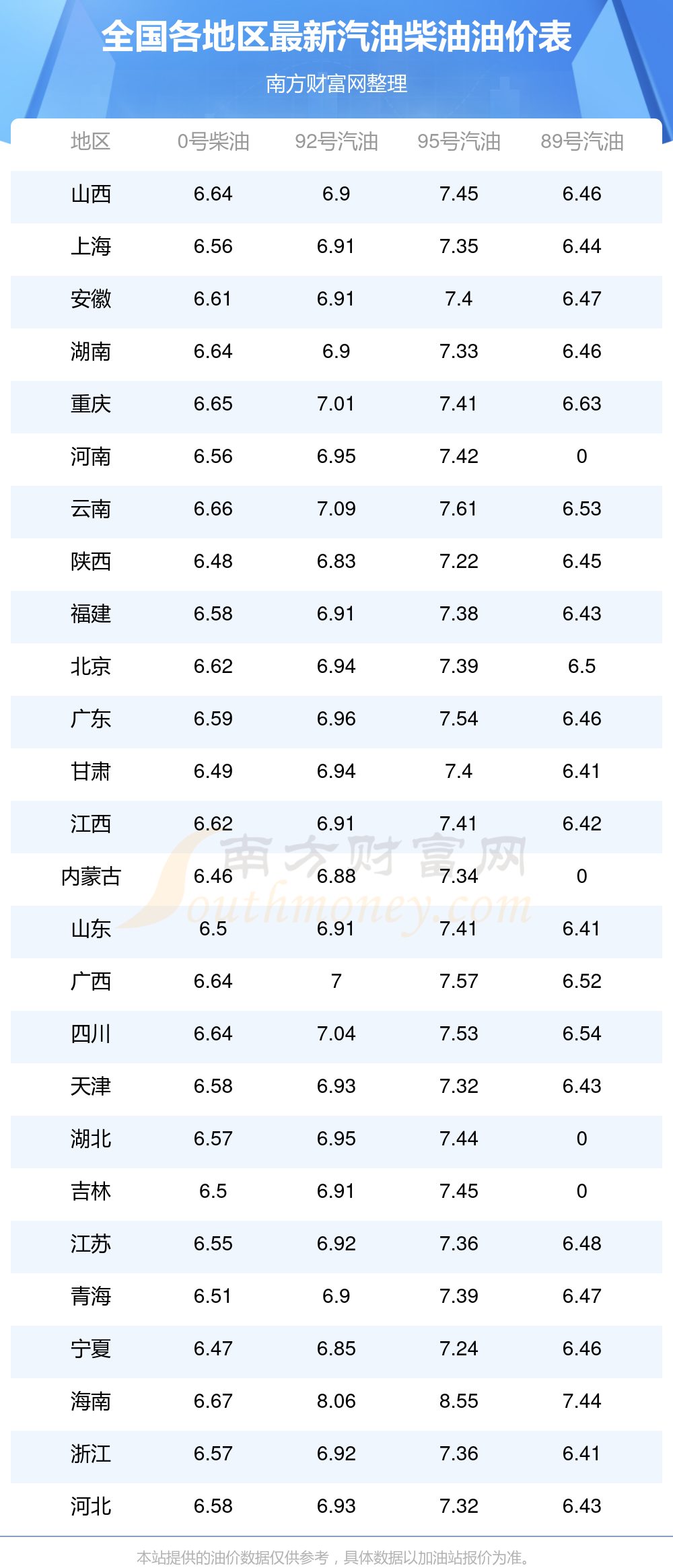 2025年11月13日全國油價(jià)調(diào)整及最新汽油價(jià)格表