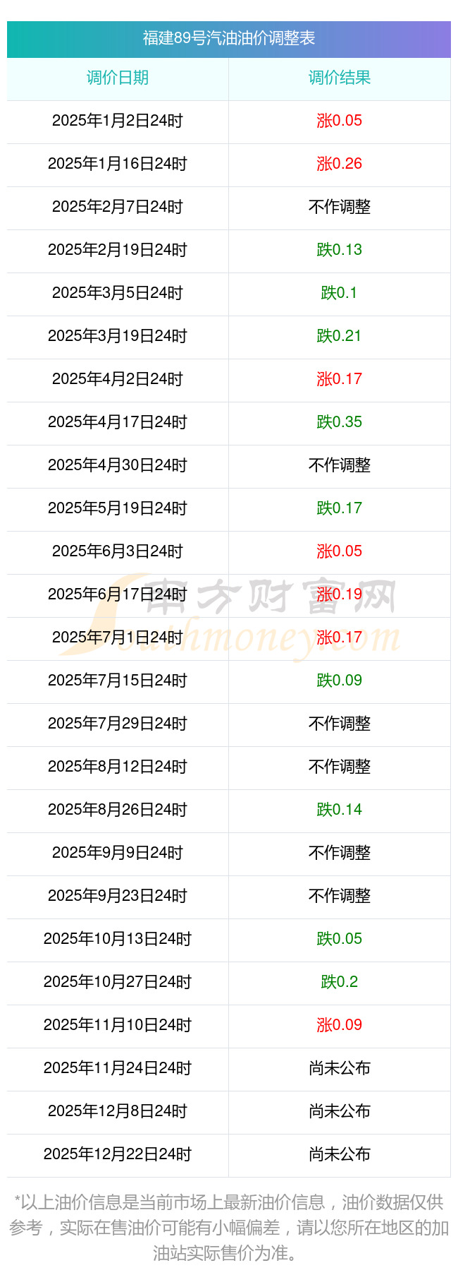 2025年福建最新汽油價(jià)格調(diào)整一覽表
