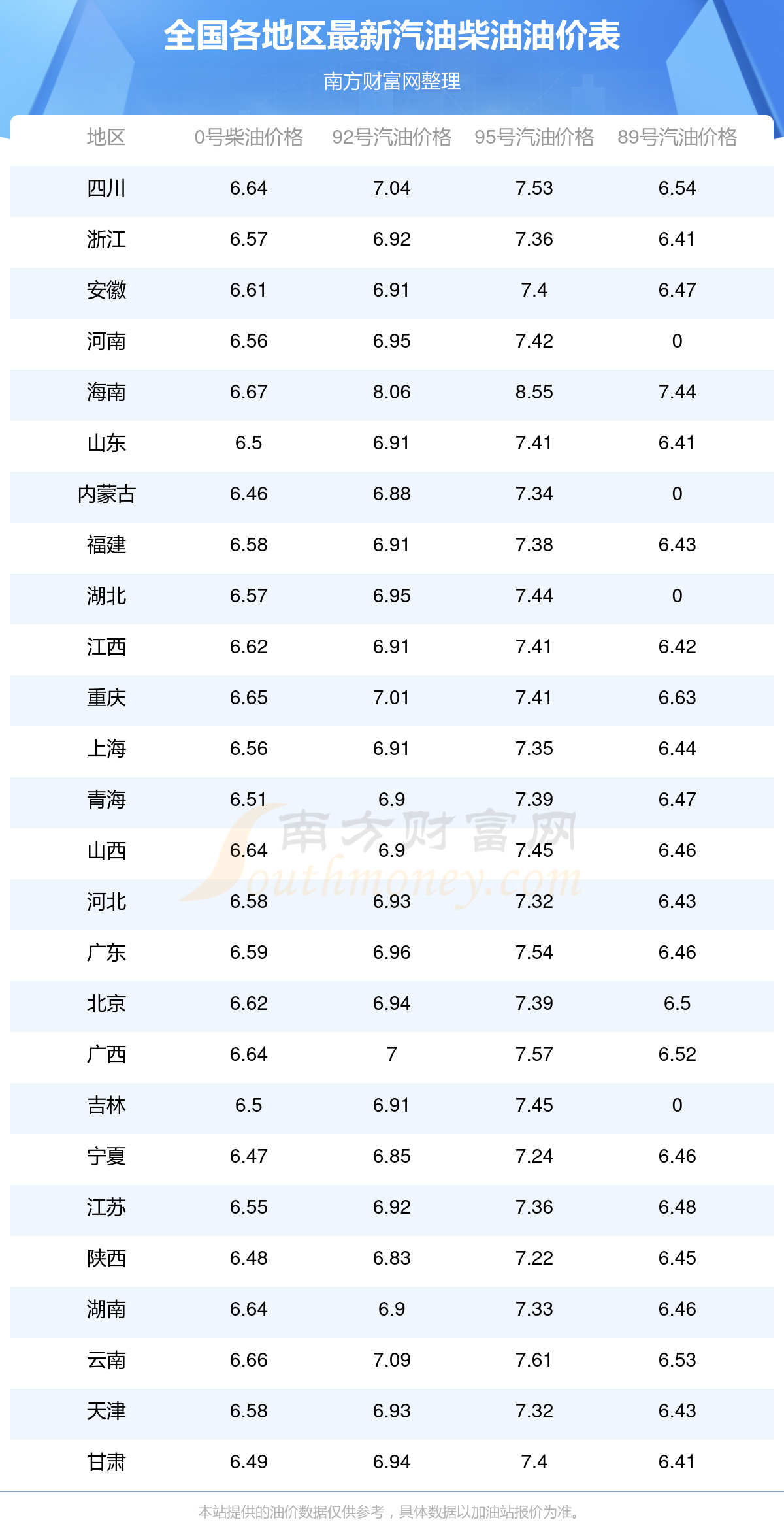 2025年11月13日全國油價調(diào)整及最新汽油價格表