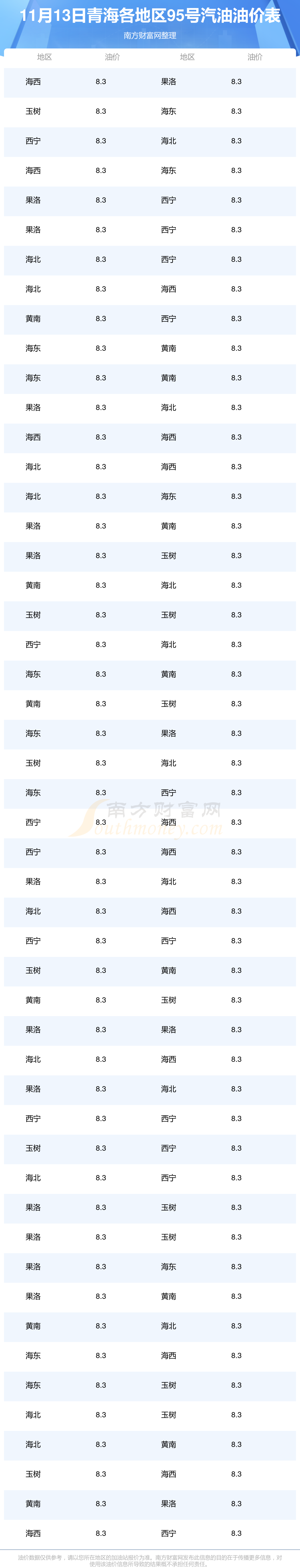 11月13日青海95號汽油的價格是7.39元/升,油價調(diào)整時間是11月11日,對比上一次油價調(diào)整共漲了0.1元。