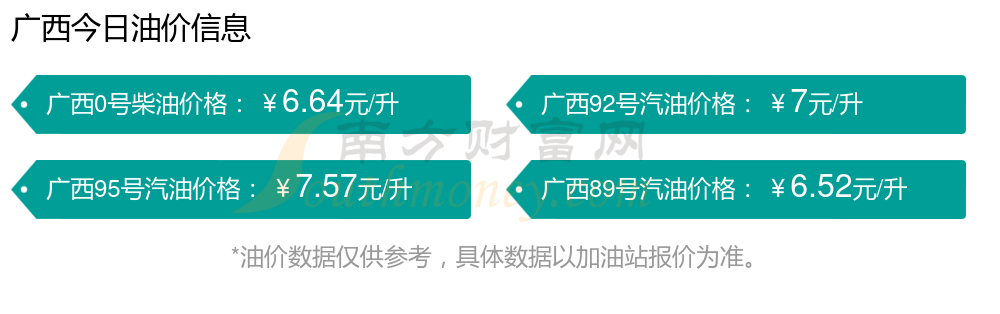 油價(jià)數(shù)據(jù)僅供參考,請(qǐng)以您所在地區(qū)的各加油站報(bào)價(jià)為準(zhǔn)。