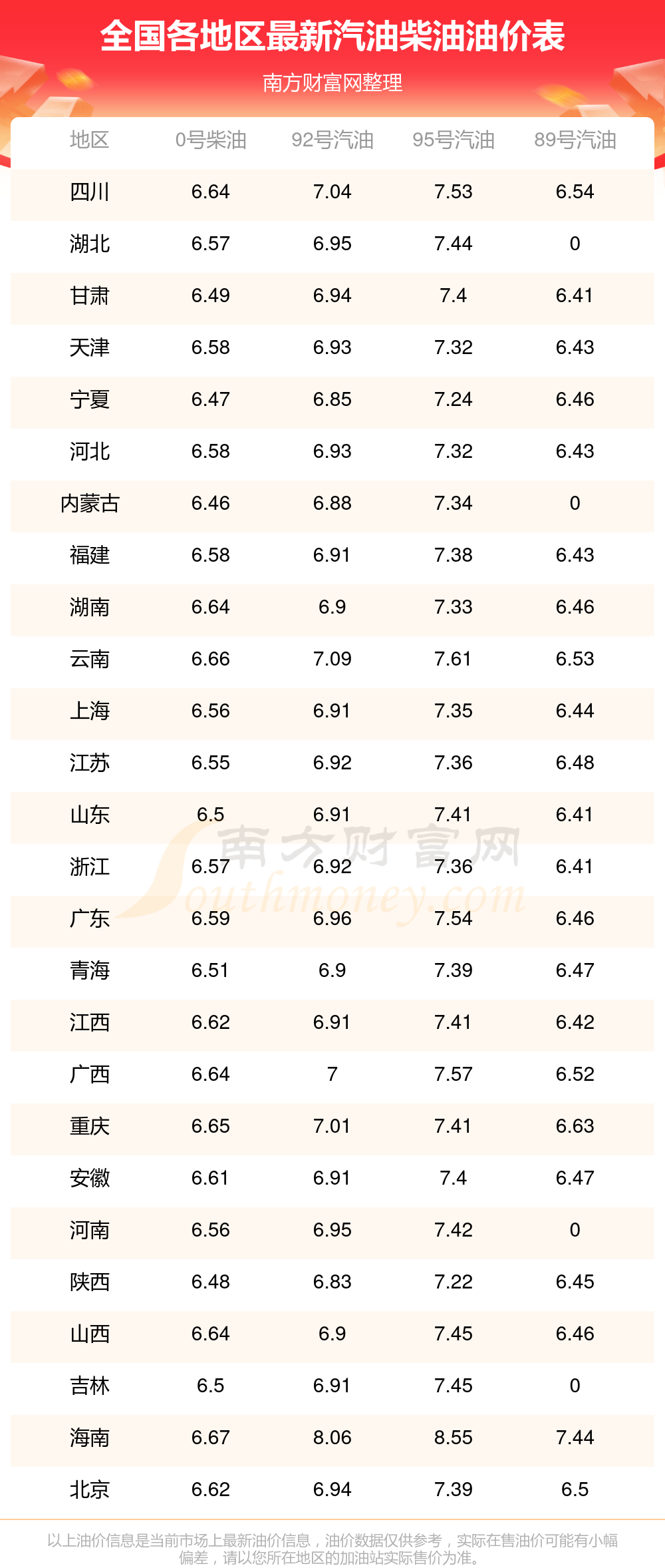油價數(shù)據(jù)僅供參考,請以您所在地區(qū)的加油站報價為準(zhǔn)。南方財富網(wǎng)發(fā)布此信息的目的在于傳播更多信息,對使用該油價信息所導(dǎo)致的結(jié)果概不承擔(dān)任何責(zé)任。