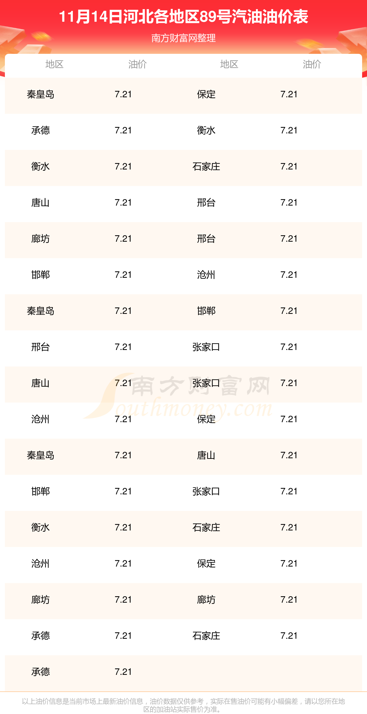 河北各地區(qū)最新89號(hào)汽油油價(jià)表