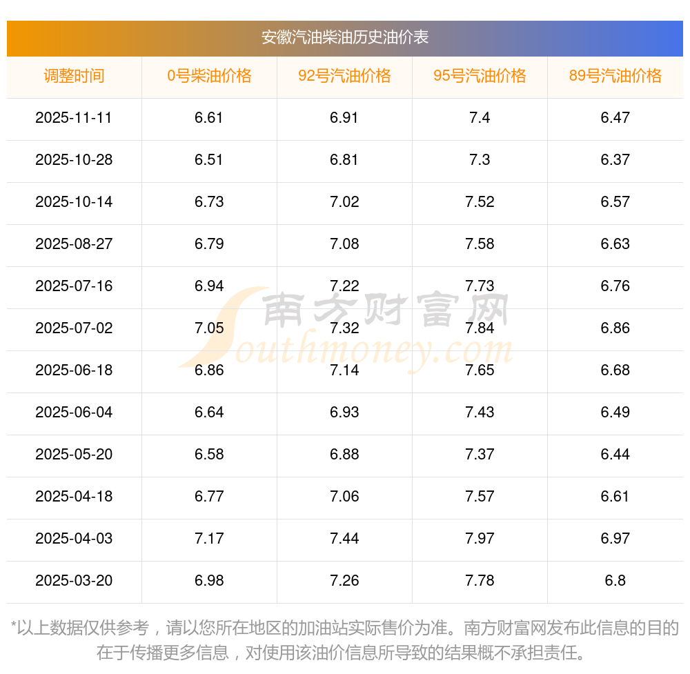 11月14日,安徽95號汽油最新油價是7.4元每升,本輪調(diào)整時間為11月11日,相對上輪調(diào)整時間10月28日的油價7.3元/升,上升了0.1元。