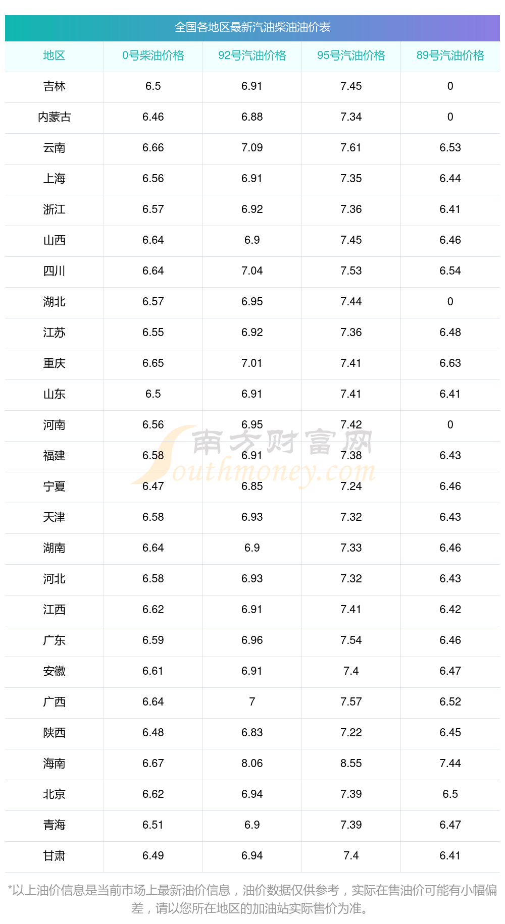 2025年11月14日全國油價(jià)調(diào)整及最新汽油價(jià)格表