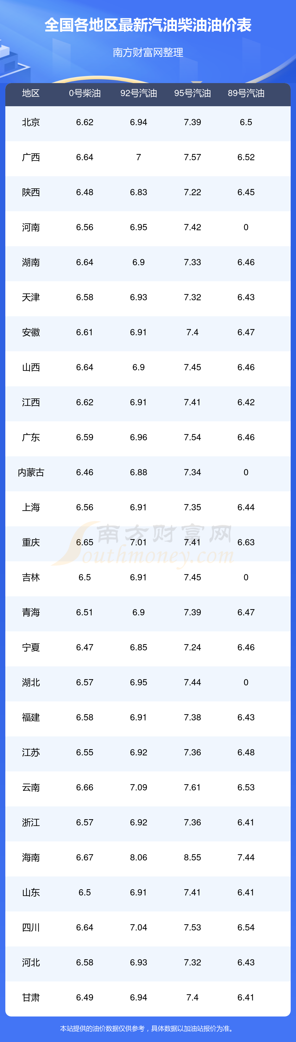 油價數(shù)據(jù)僅供參考,請以您所在地區(qū)的各加油站報價為準。