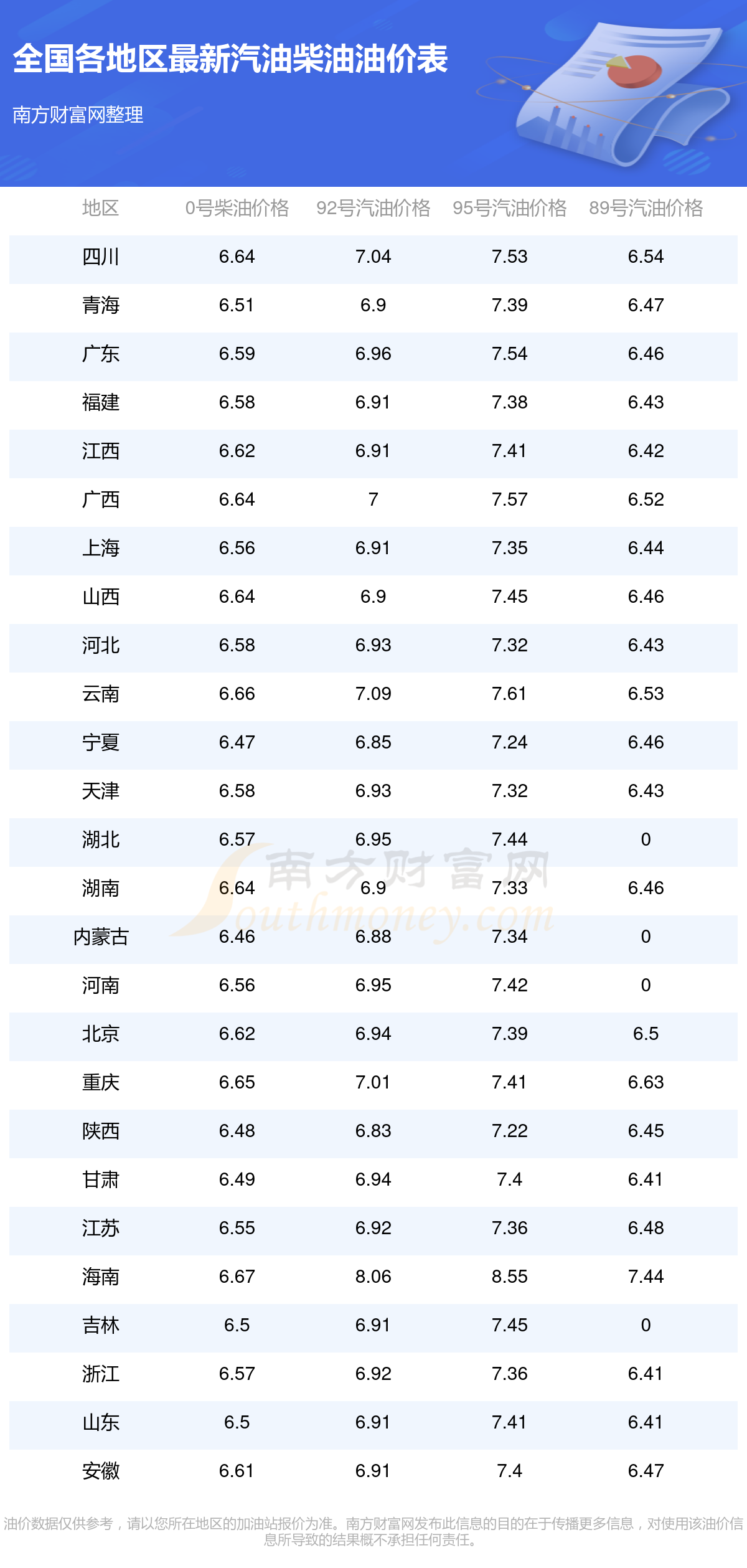 全國89號汽油最新平均價(jià)格為:7元每升,其中,最低為浙江,價(jià)格為6.41元/升,最高為海南,價(jià)格為7.44元/升。