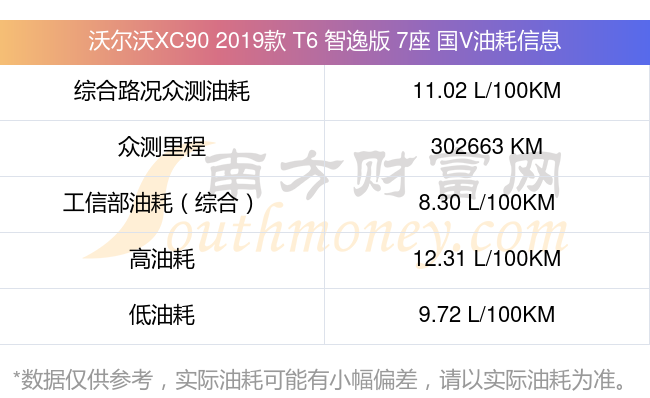 根據(jù)車主實(shí)測數(shù)據(jù),該車型低油耗為9.72升每百公里,高油耗為12.31升每百公里,綜合路況眾測油耗為11.02升每百公里,工信部綜合油耗為8.30升每百公里。