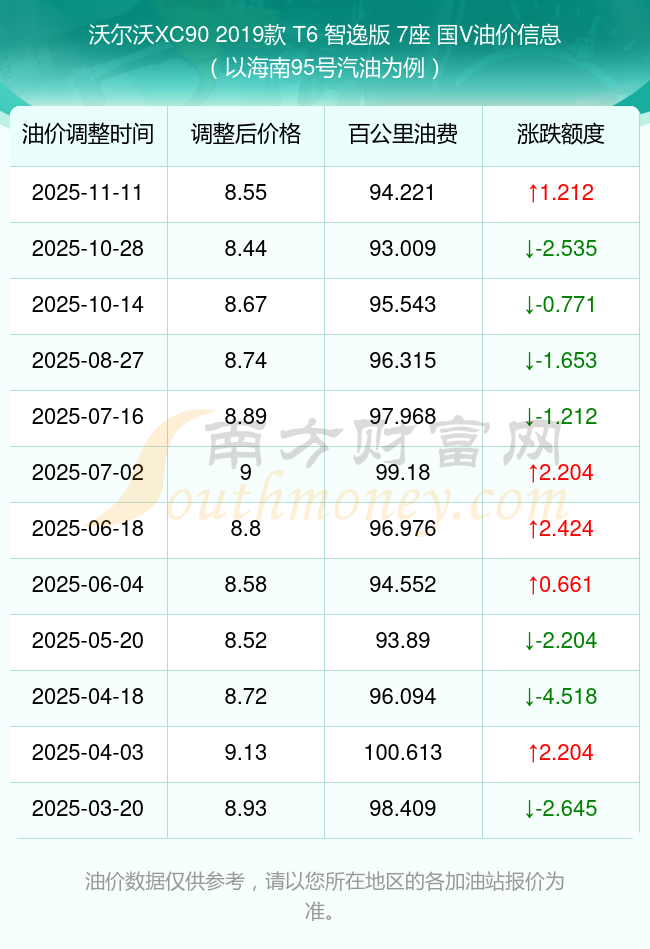 按照11月11日95號(hào)汽油最新調(diào)整價(jià)格8.55元/升來計(jì)算(以海南為例),該車型百公里平均油費(fèi)為94.221元,按照上一輪10月28日調(diào)整價(jià)格8.44元/升來計(jì)算,百公里平均油費(fèi)為93.009元,對(duì)比上一輪多花1.212元,下一輪油價(jià)調(diào)整時(shí)間為11月24日24時(shí)。