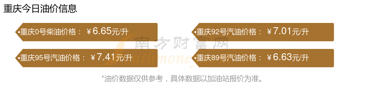 11月14日,重慶汽油、柴油每升最新價(jià)格為:92號汽油為7.01元,上調(diào)了0.1元;95號汽油為7.41元,上調(diào)了0.11元;89號汽油為6.63元,上調(diào)了0.09元;0號柴油為6.65元,上調(diào)了0.1元,調(diào)整時(shí)間為11月11日。下一輪油價(jià)調(diào)整時(shí)間11月24日24時(shí),距離現(xiàn)在還有10.71天。