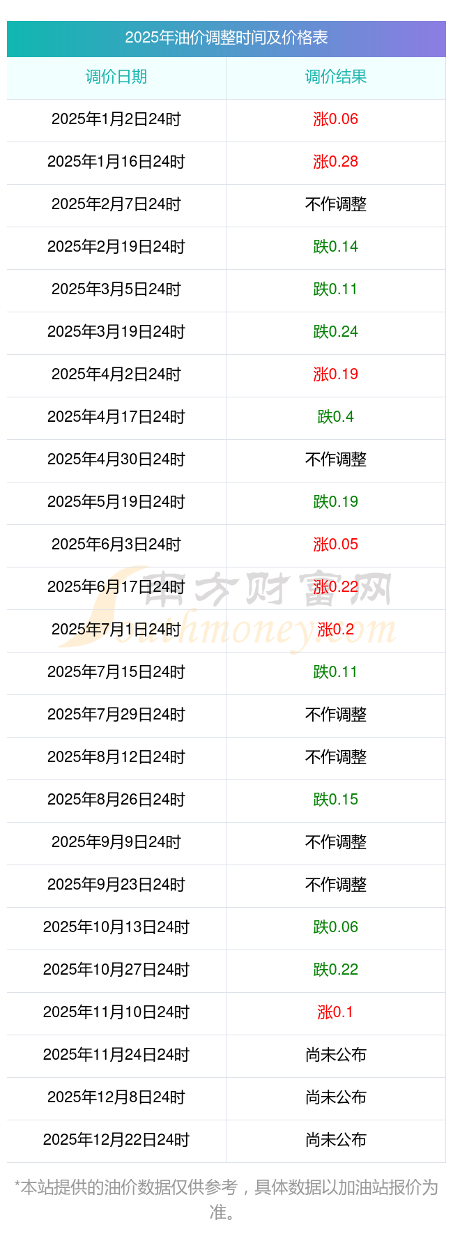 2025年11月14日油價調(diào)整時間及價格一覽表