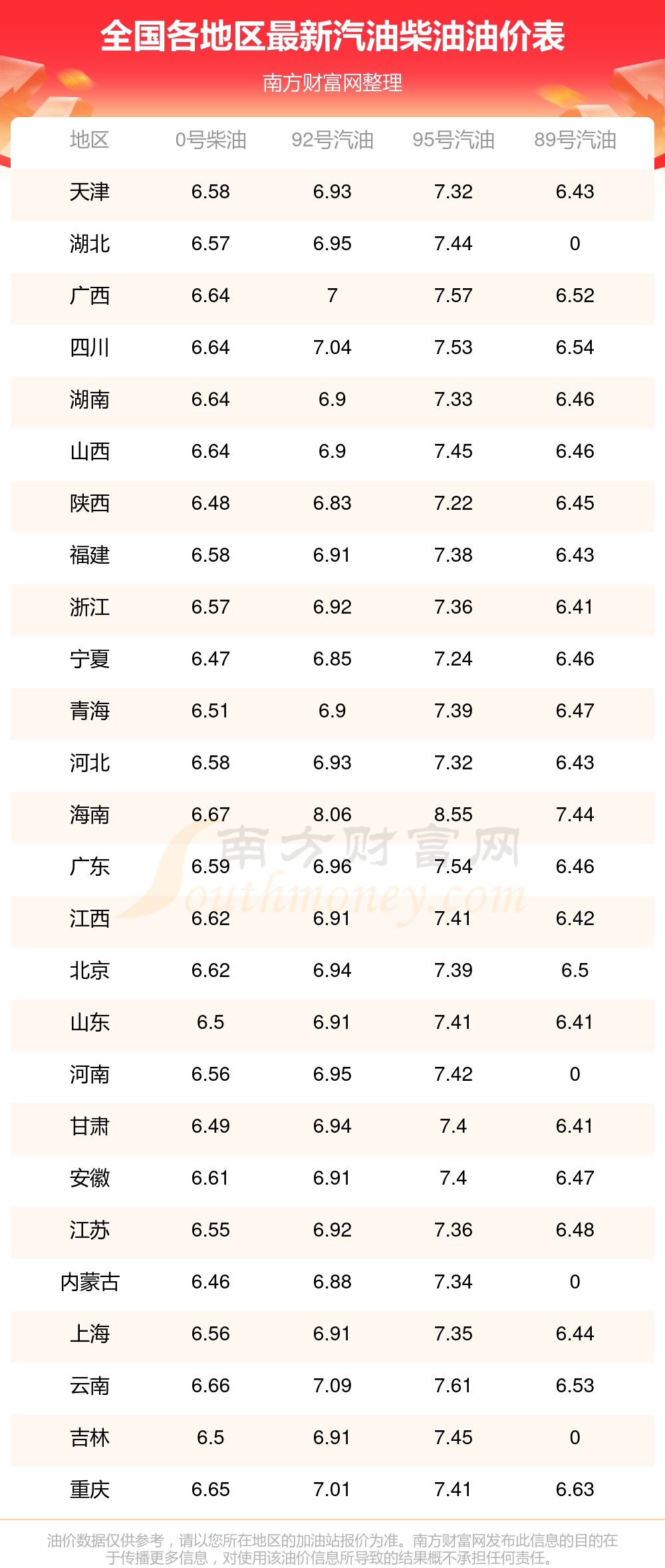 2025年11月14日全國(guó)油價(jià)調(diào)整及最新汽油價(jià)格表