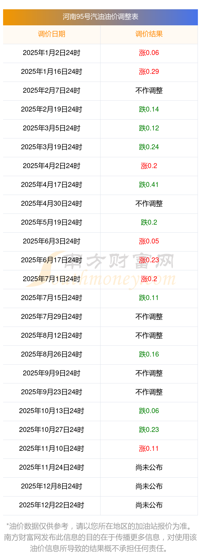 2025年油價(jià)調(diào)整時(shí)間及價(jià)格一覽表
