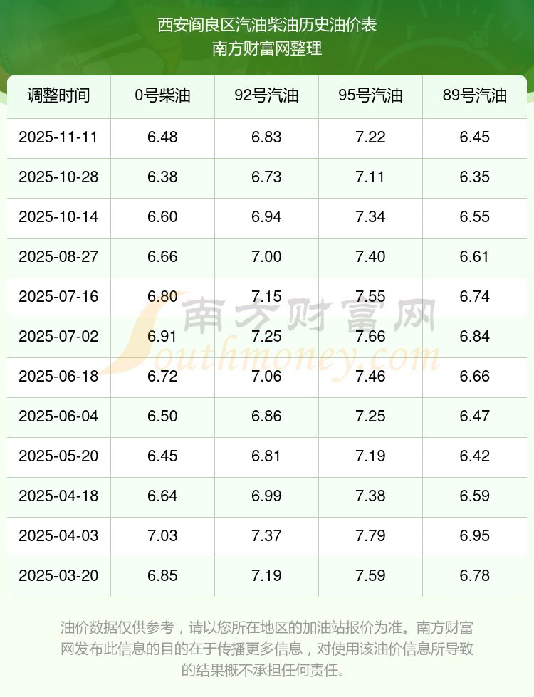 西安閻良區(qū)11月14日汽油價格詳情:92號汽油6.83元;95號汽油7.22元;89號汽油6.45元;0號柴油6.48元(該價格為11月11日調整后的價格)。