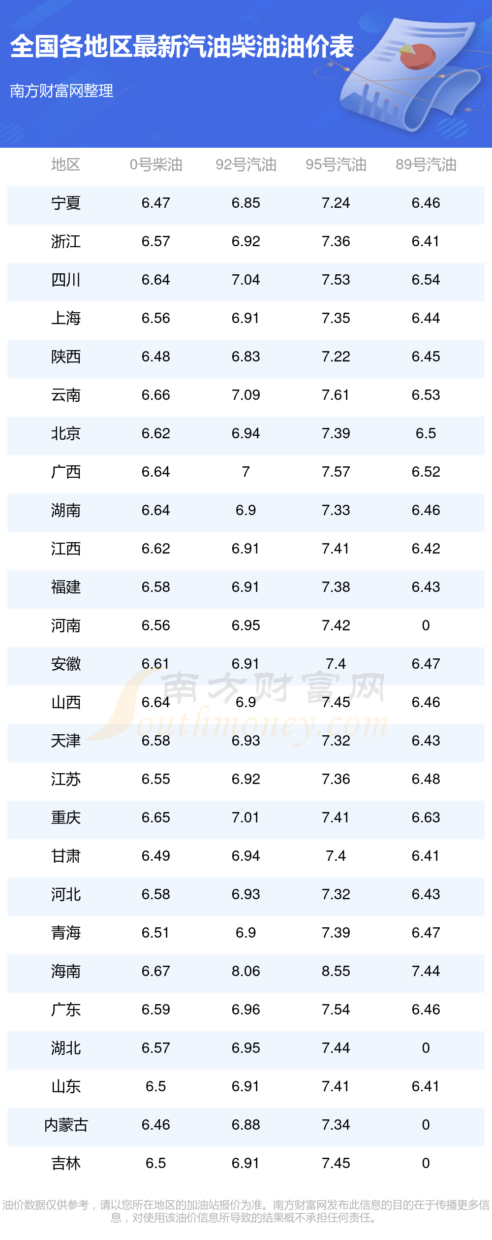 全國各地區(qū)最新油價表