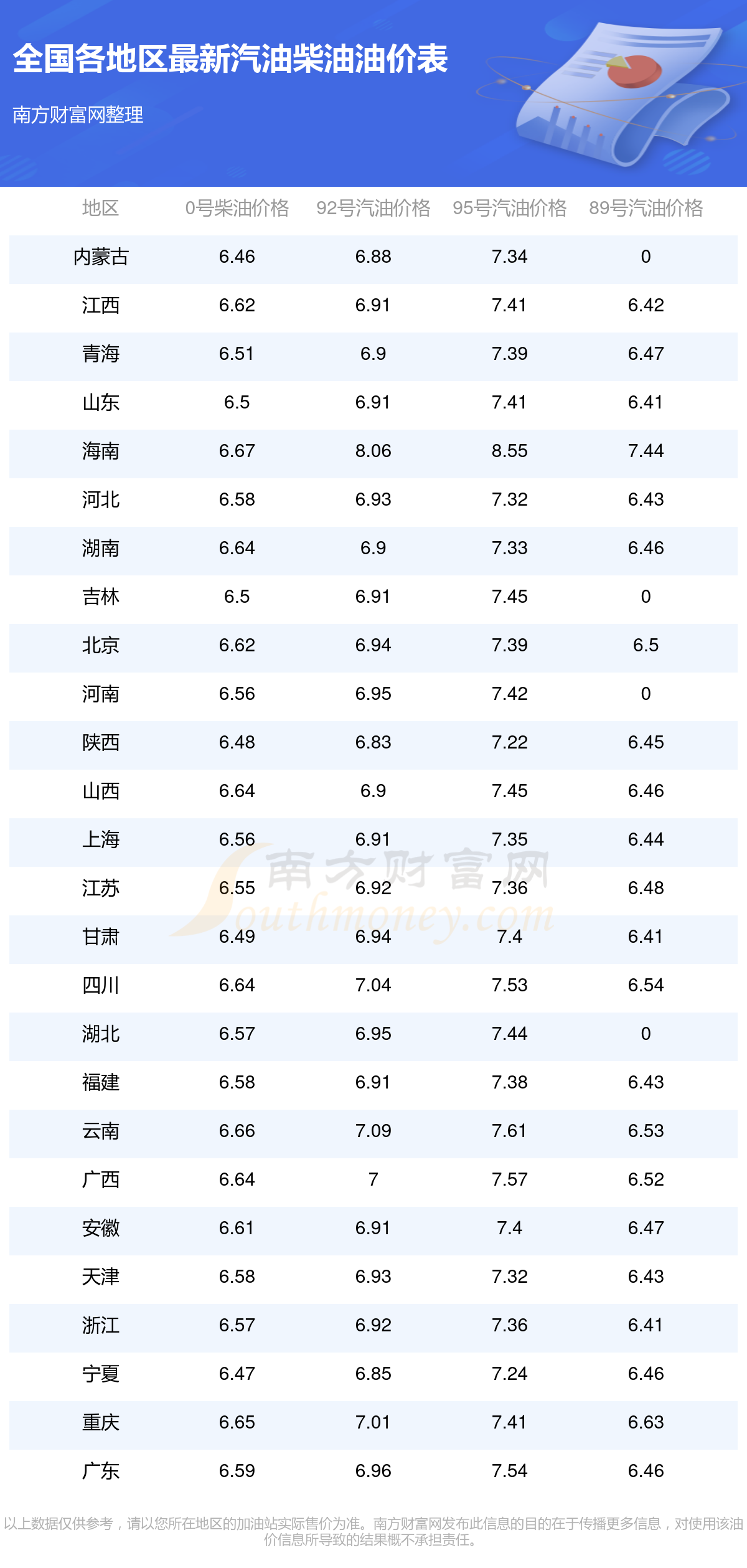 全國各地區(qū)最新油價表