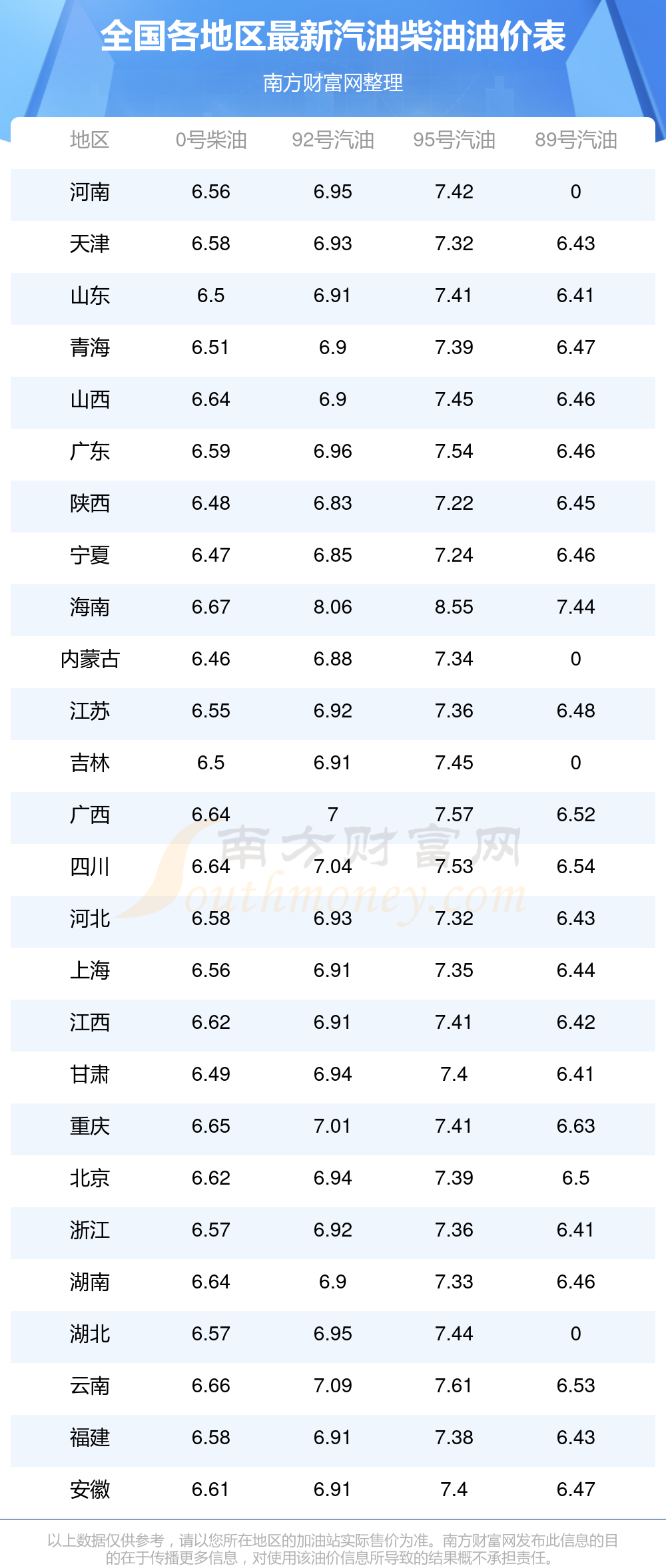 2025年11月14日全國(guó)油價(jià)調(diào)整及最新汽油價(jià)格表