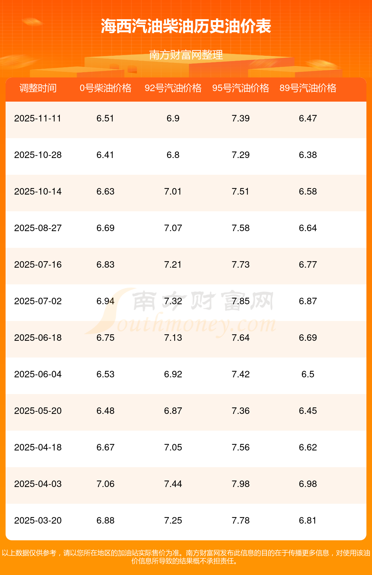 2025年汽油柴油歷史油價調(diào)整一覽表