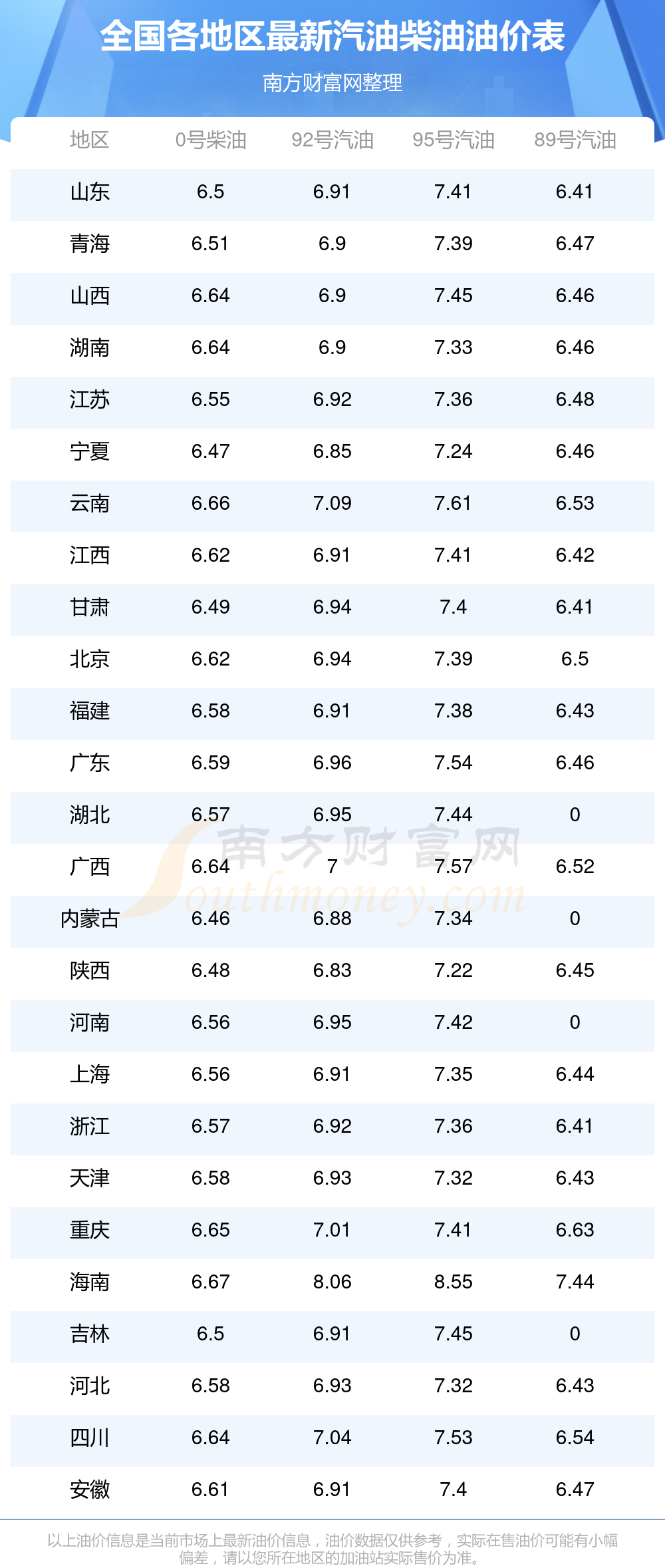 油價(jià)數(shù)據(jù)僅供參考,請(qǐng)以您所在地區(qū)的各加油站報(bào)價(jià)為準(zhǔn)。