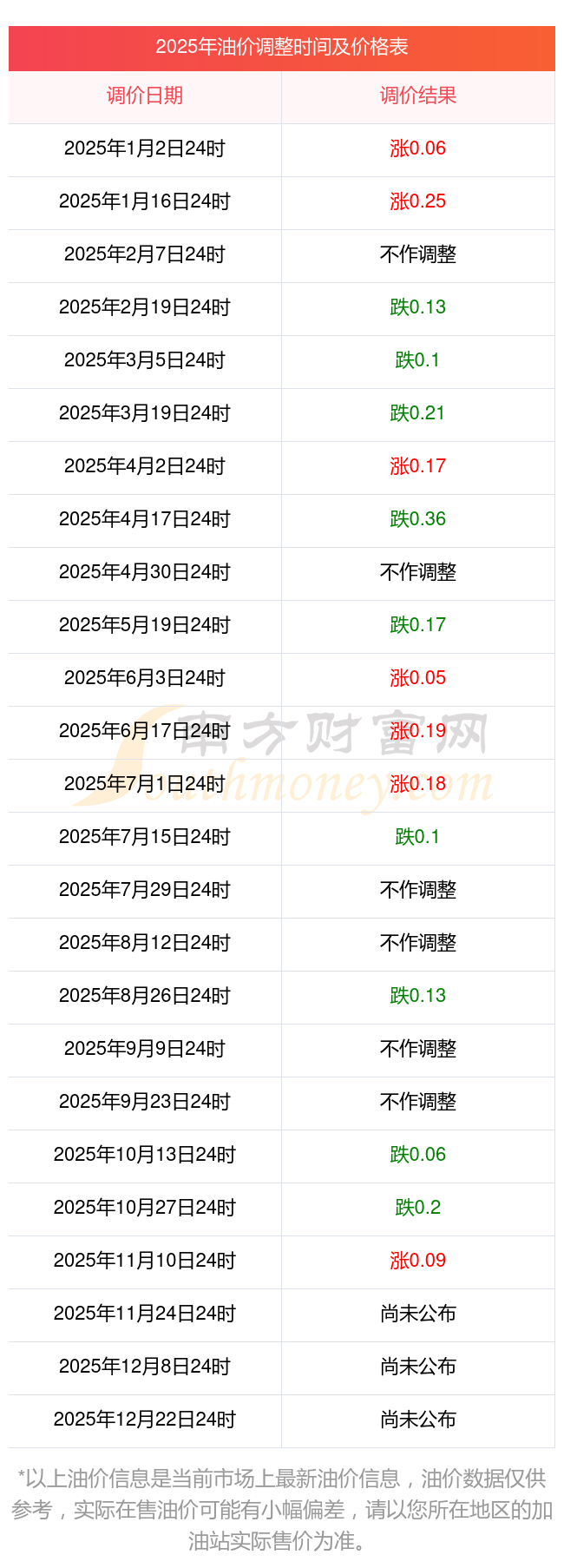大通回族土族自治縣11月14日油價(jià)調(diào)整時(shí)間及價(jià)格表
