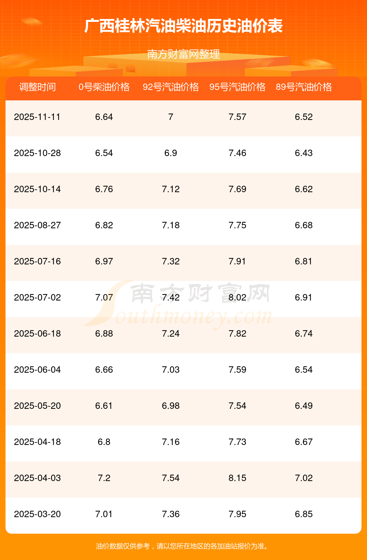 2025年汽油柴油歷史油價(jià)調(diào)整一覽表