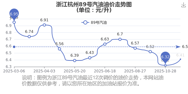 浙江杭州2025年汽油價(jià)格調(diào)整走勢圖