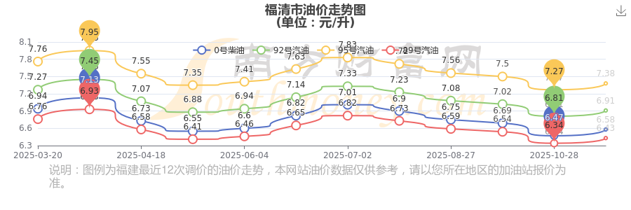 福清市汽油、柴油11月14日每升的價格是多少?11月11日調(diào)整后的價格詳情如下:92號汽油6.91元;95號汽油7.38元;89號汽油6.43元;0號柴油6.58元。