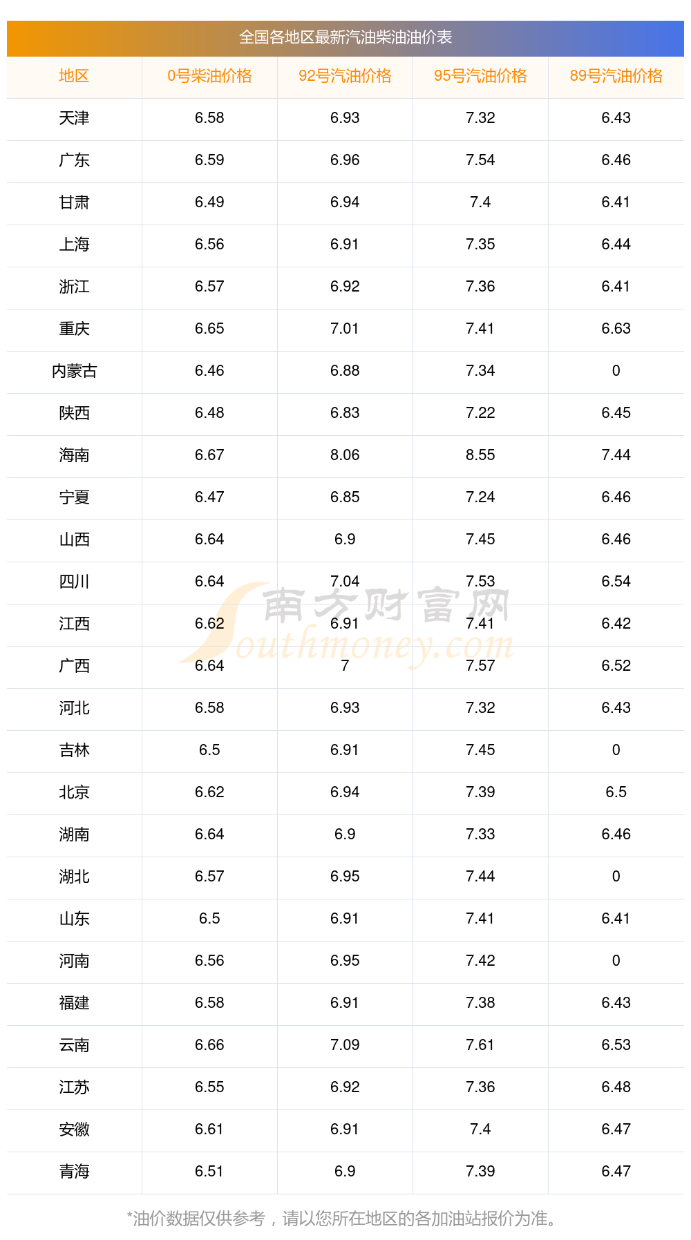 2025年11月14日全國油價調(diào)整及最新汽油價格表