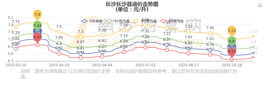 長(zhǎng)沙長(zhǎng)沙縣11月14日0號(hào)柴油歷史油價(jià)調(diào)整走勢(shì)圖