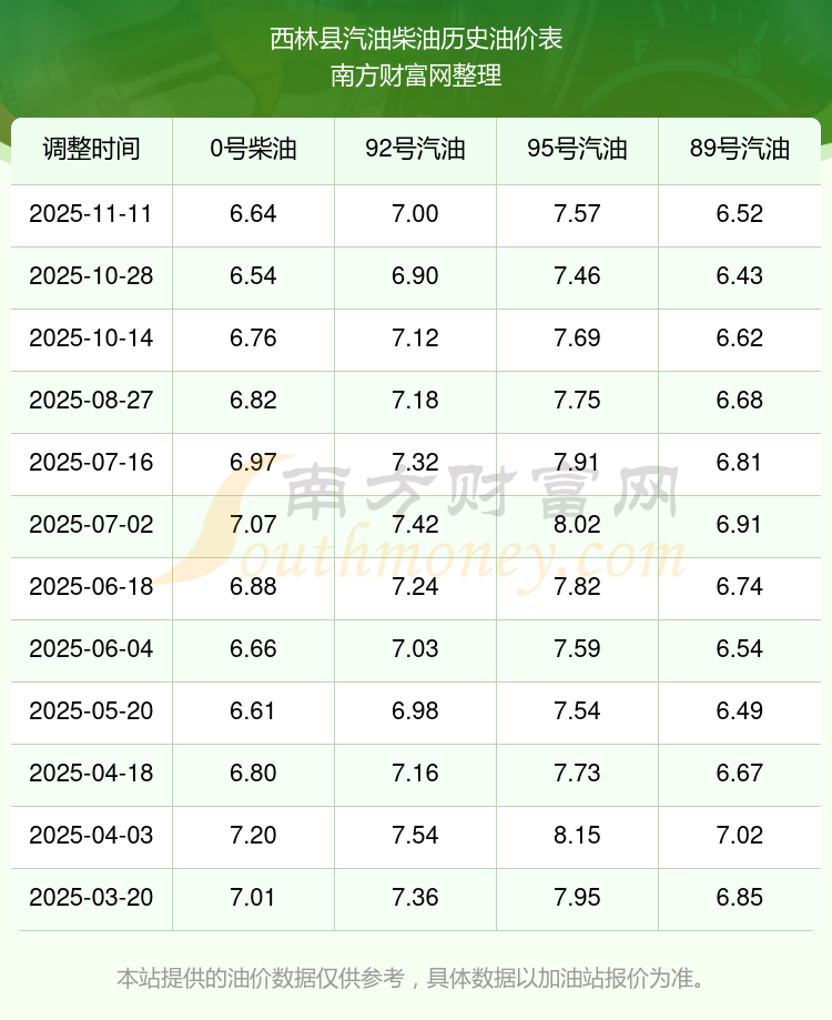 2025年西林縣油價(jià)調(diào)整時(shí)間表